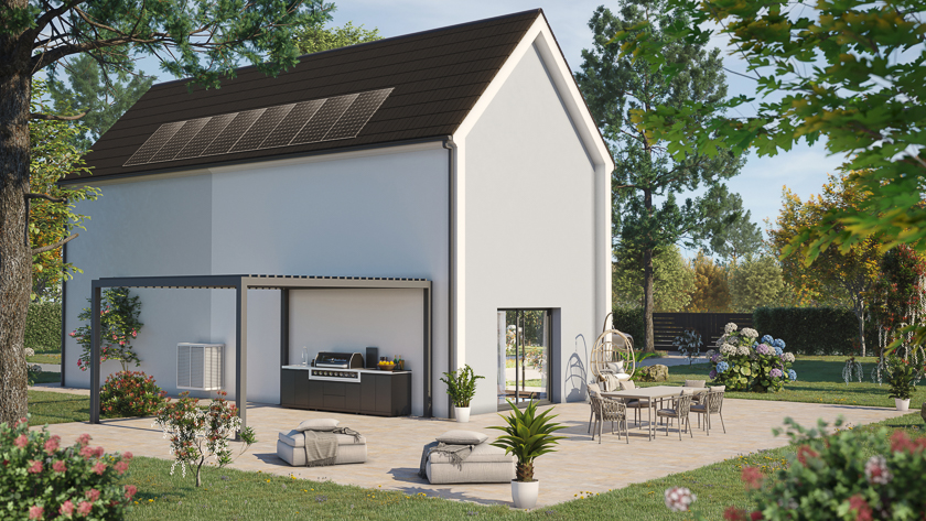 Les menuiseries sont en PVC de couleur blanche. La toiture est réalisée en tuiles béton double romane. Plusieurs couleurs d’enduit extérieur sont proposées.