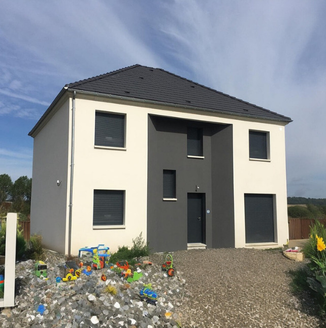 Les menuiseries sont en PVC de couleur blanche. La toiture est réalisée en tuiles béton double romane. Plusieurs couleurs d’enduit extérieur sont proposées.