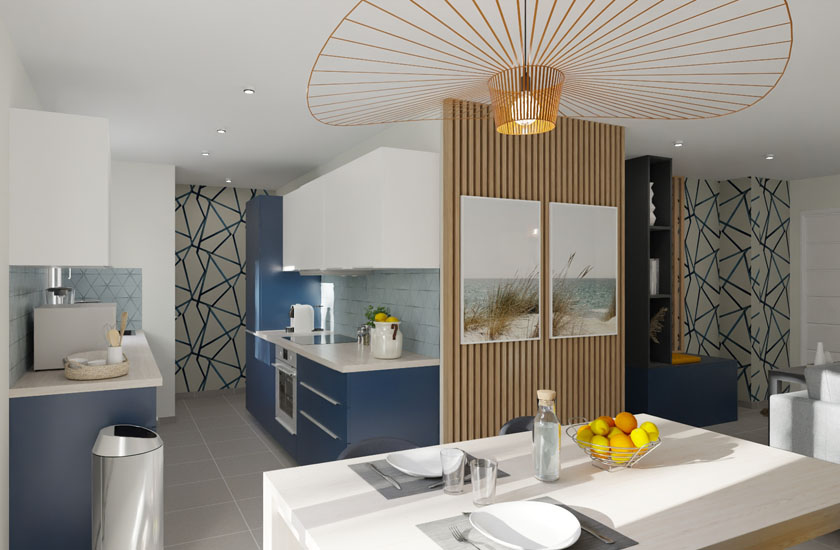 ECLAT est une maison à étage d’une surface totale de 90 m2. Elle est construite sur vide sanitaire et propose au rez-de-chaussée un séjour-cuisine de 35 m2, un WC et d’un garage intégré de plus de 13 m2 donnant accès cellier. L’espace nuit se situe à l’étage. Il se compose de 3 chambres de plus de 9 m2, d’une quatrième chambre avec dressing pour une surface totale de 12,5m2 et une salle de bains avec possibilité d’installer en option un WC. A noter, le garage est compatible avec un futur aménagement intérieur (hors point d’eau). Les menuiseries sont en PVC de couleur blanche, les volets sont quant à eux en bois prépeints en blanc. Plusieurs couleurs d’enduit extérieur sont proposées.