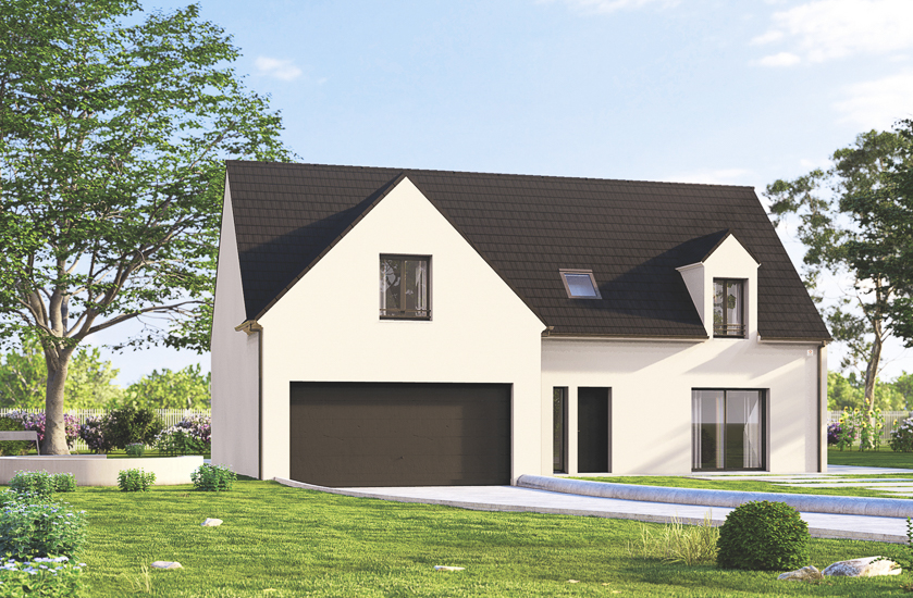 Les menuiseries sont en PVC de couleur blanche. La toiture est réalisée en tuiles béton double romane. Plusieurs couleurs d’enduit extérieur sont proposées.