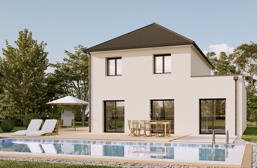 Les menuiseries sont en PVC de couleur blanche. La toiture est réalisée en tuiles béton double romane. Plusieurs couleurs d’enduit extérieur sont proposées.