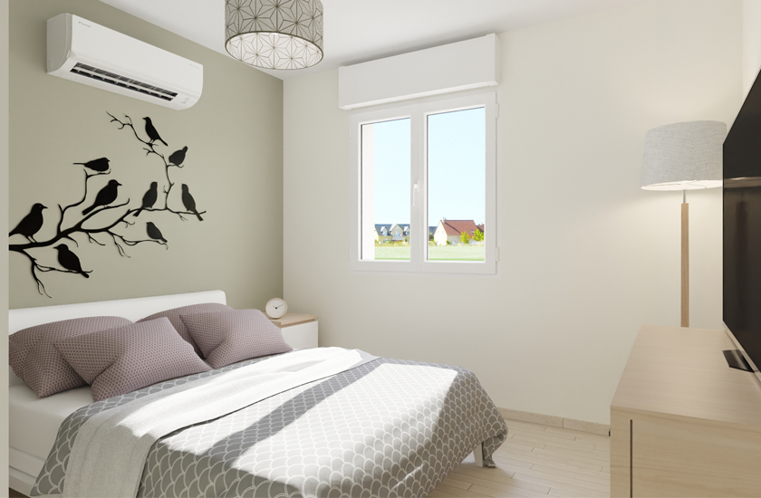 Les menuiseries sont en PVC de couleur blanche. La toiture est réalisée en tuiles béton double romane. Plusieurs couleurs d’enduit extérieur sont proposées.