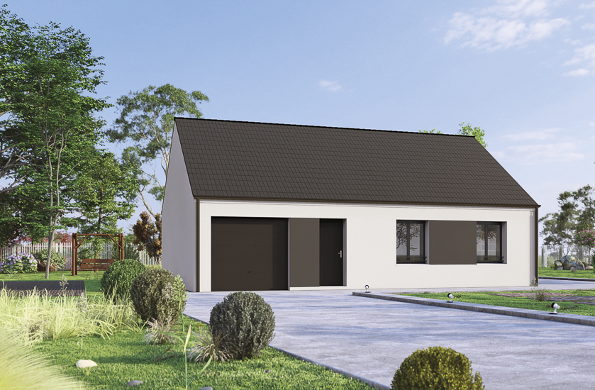 Cette maison de plain-pied, construite sur vide sanitaire, propose une surface habitable de 53 m². Elle dispose d’une chambre, d’un séjour cuisine d’environ 34 m², d’une salle d’eau et d’un WC indépendant. En option, elle peut être agrémentée d’un garage accolé de plus de 15 m². Les menuiseries sont en PVC de couleur blanche. Plusieurs couleurs d’enduit extérieur sont proposées.