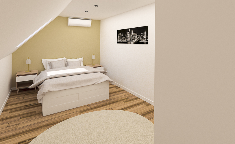 Cette maison à combles aménagés d’une surface habitable de 91 m² est construite sur vide sanitaire. Elle comprend 4 chambres, un séjour cuisine de plus de 33 m², une salle de bains équipée et un wc indépendant.