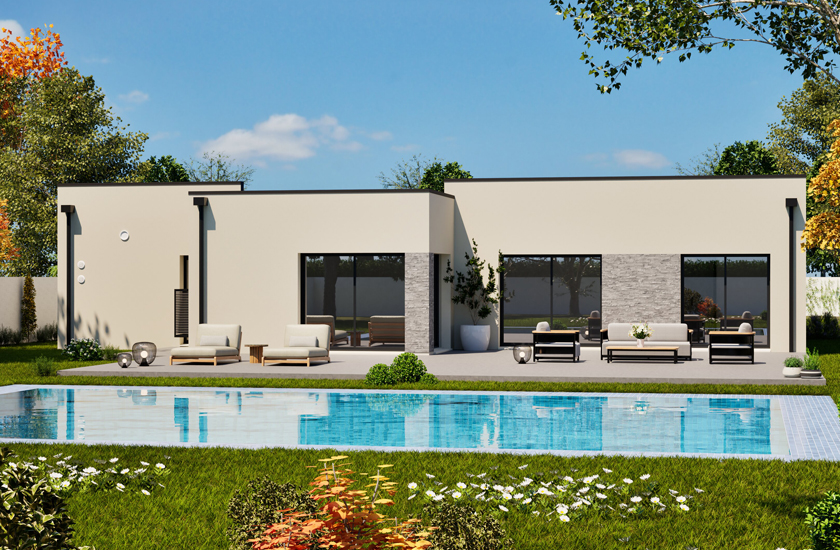 Tous les modèles de la gamme Contemporaine sont pourvus de matériaux et d’équipements haut de gamme. Les menuiseries extérieures, tout comme les volets roulants, les gouttières et descentes d’eaux pluviales sont en aluminium. L’isolation est réalisée avec un matériau alvéolaire de nouvelle génération, 100% recyclable. Les façades sont habillées d’un enduit gratté d’un aspect fin et sobre et peuvent être agrémentées en option d’un parement imitation pierre, brique…