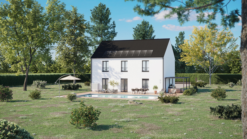 Les menuiseries sont en PVC de couleur blanche. La toiture est réalisée en tuiles béton double romane. Plusieurs couleurs d’enduit extérieur sont proposées.