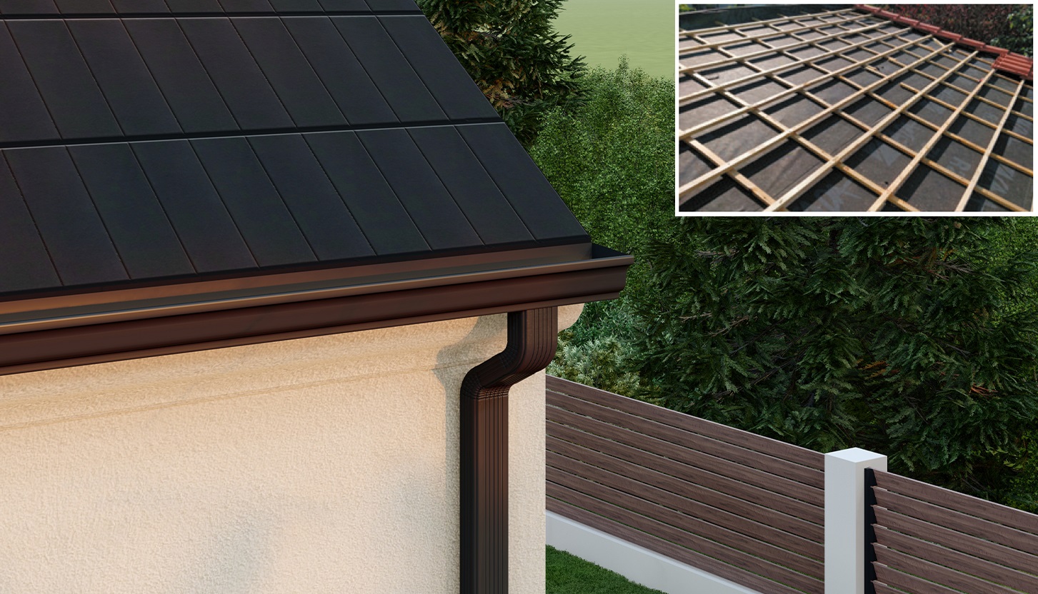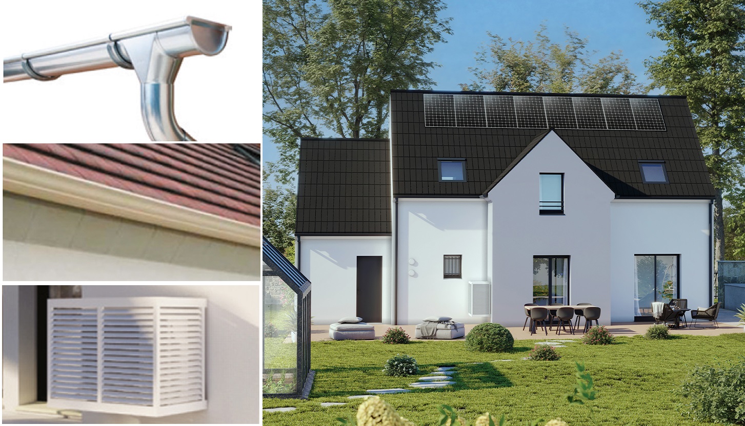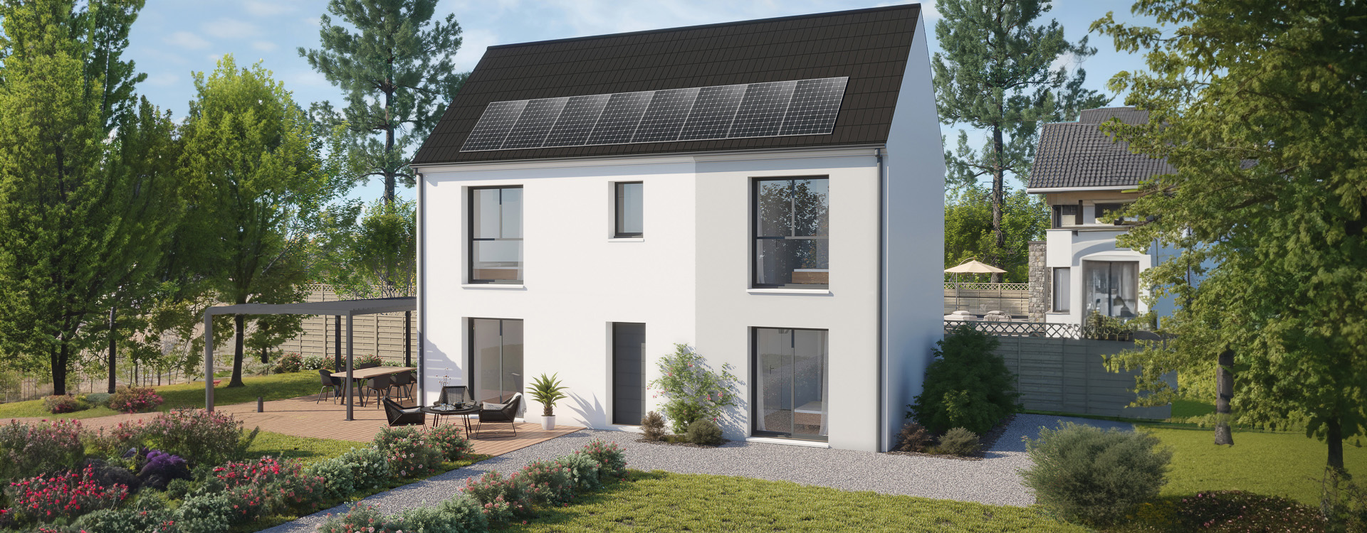 Les menuiseries sont en PVC de couleur blanche. La toiture est réalisée en tuiles béton double romane. Plusieurs couleurs d’enduit extérieur sont proposées.