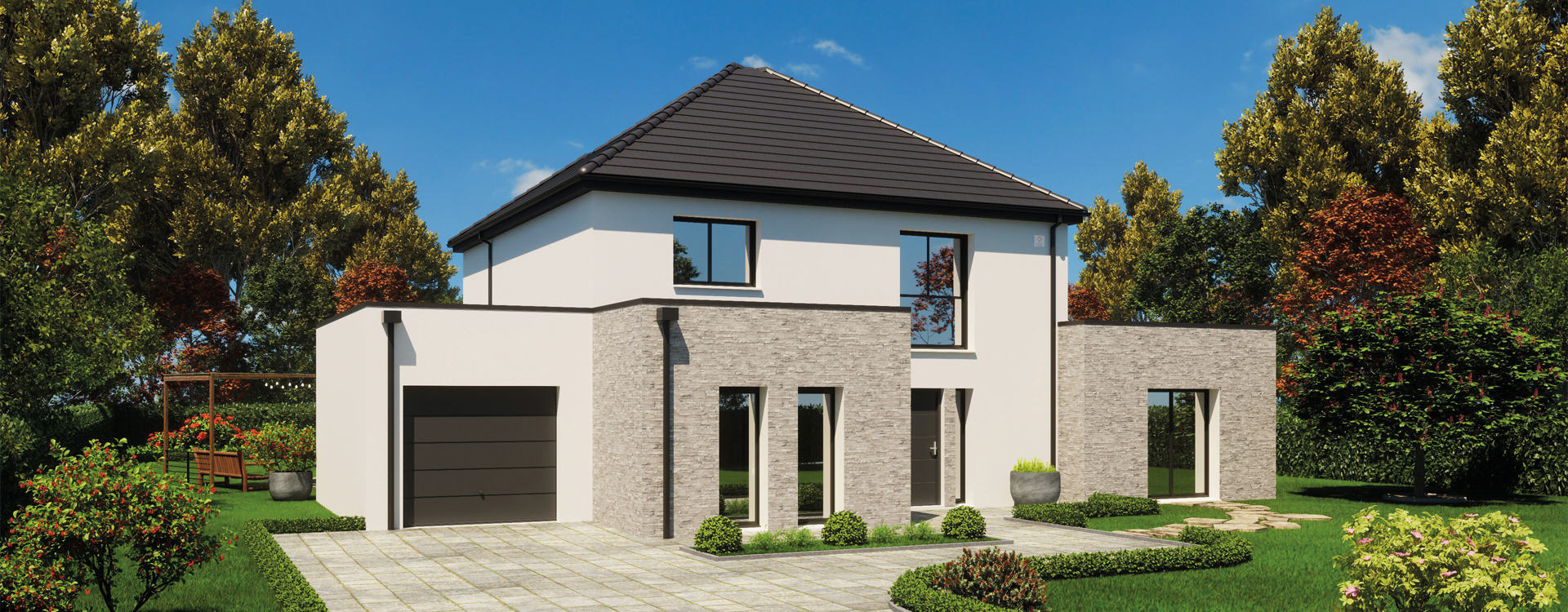 Tous les modèles de la gamme Contemporaine sont pourvus de matériaux et d’équipements haut de gamme. Les menuiseries extérieures, tout comme les volets roulants, les gouttières et descentes d’eaux pluviales sont en aluminium. L’isolation est réalisée avec un matériau alvéolaire de nouvelle génération, 100% recyclable. Les façades sont habillées d’un enduit gratté d’un aspect fin et sobre et peuvent être agrémentées en option d’un parement imitation pierre, brique…