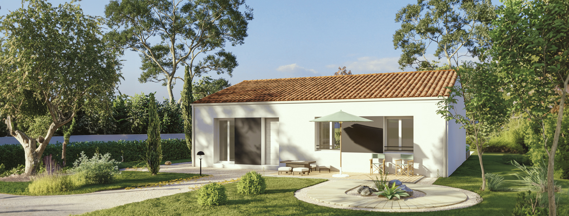 Les menuiseries sont en PVC de couleur blanche. La toiture est réalisée en tuiles béton double romane. Plusieurs couleurs d’enduit extérieur sont proposées.