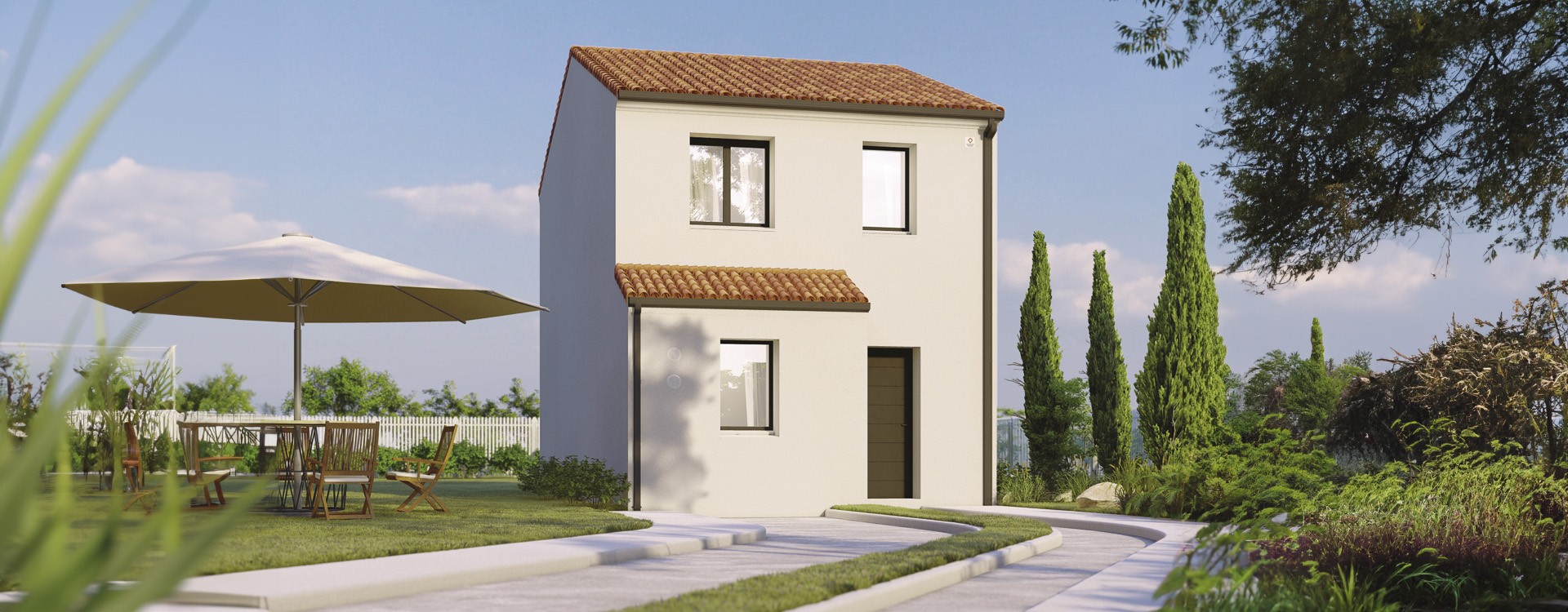 Les menuiseries sont en PVC de couleur blanche. La toiture est réalisée en tuiles béton double romane. Plusieurs couleurs d’enduit extérieur sont proposées.