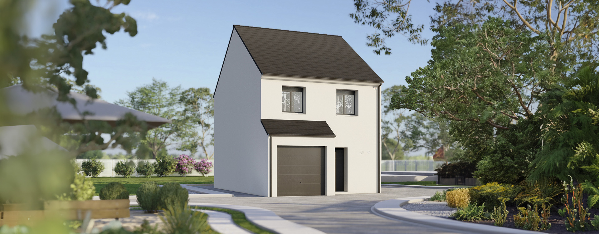 Les menuiseries sont en PVC de couleur blanche. La toiture est réalisée en tuiles béton double romane. Plusieurs couleurs d’enduit extérieur sont proposées.
