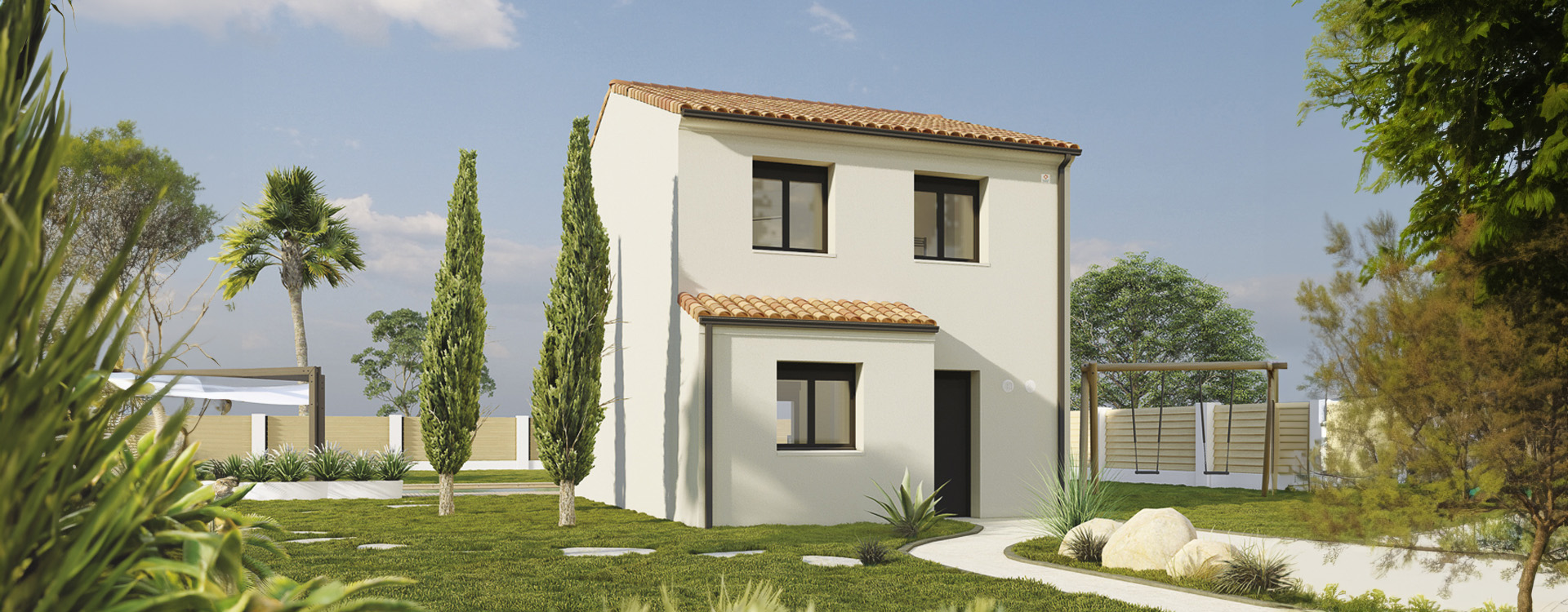Les menuiseries sont en PVC de couleur blanche. La toiture est réalisée en tuiles béton double romane. Plusieurs couleurs d’enduit extérieur sont proposées.