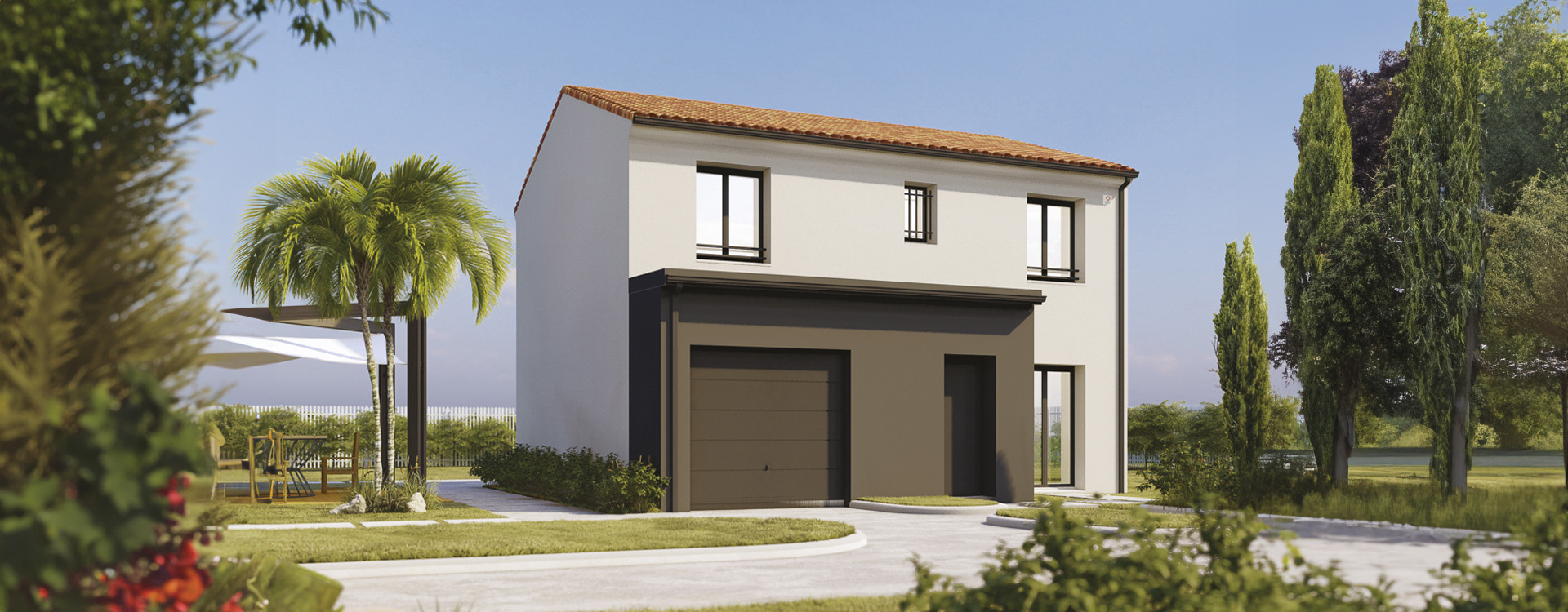 Les menuiseries sont en PVC de couleur blanche. La toiture est réalisée en tuiles béton double romane. Plusieurs couleurs d’enduit extérieur sont proposées.