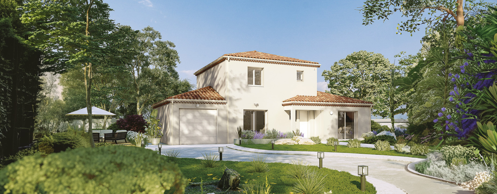 Les menuiseries sont en PVC de couleur blanche. La toiture est réalisée en tuiles béton double romane. Plusieurs couleurs d’enduit extérieur sont proposées.