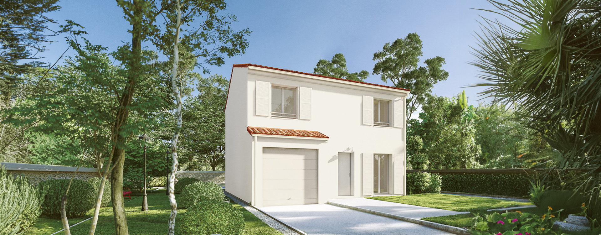 Les menuiseries sont en PVC de couleur blanche. La toiture est réalisée en tuiles béton double romane. Plusieurs couleurs d’enduit extérieur sont proposées.
