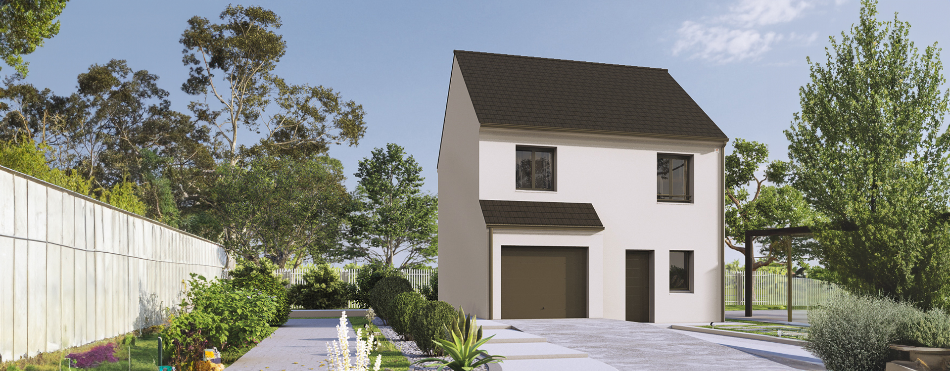 Les menuiseries sont en PVC de couleur blanche. La toiture est réalisée en tuiles béton double romane. Plusieurs couleurs d’enduit extérieur sont proposées.