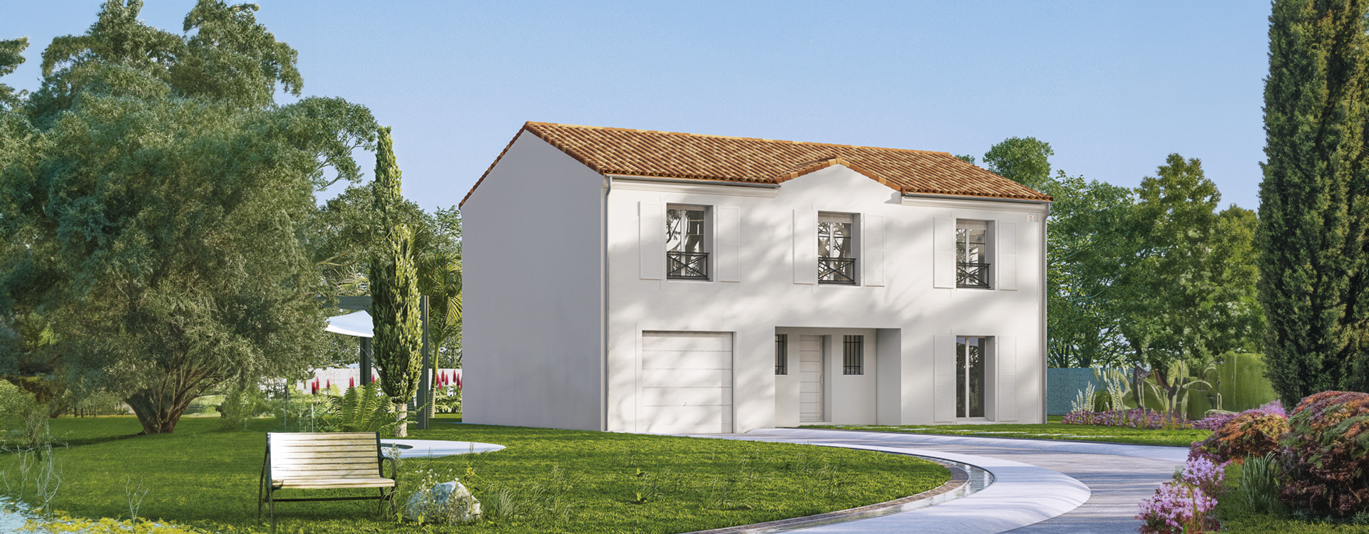 Les menuiseries sont en PVC de couleur blanche. La toiture est réalisée en tuiles béton double romane. Plusieurs couleurs d’enduit extérieur sont proposées.