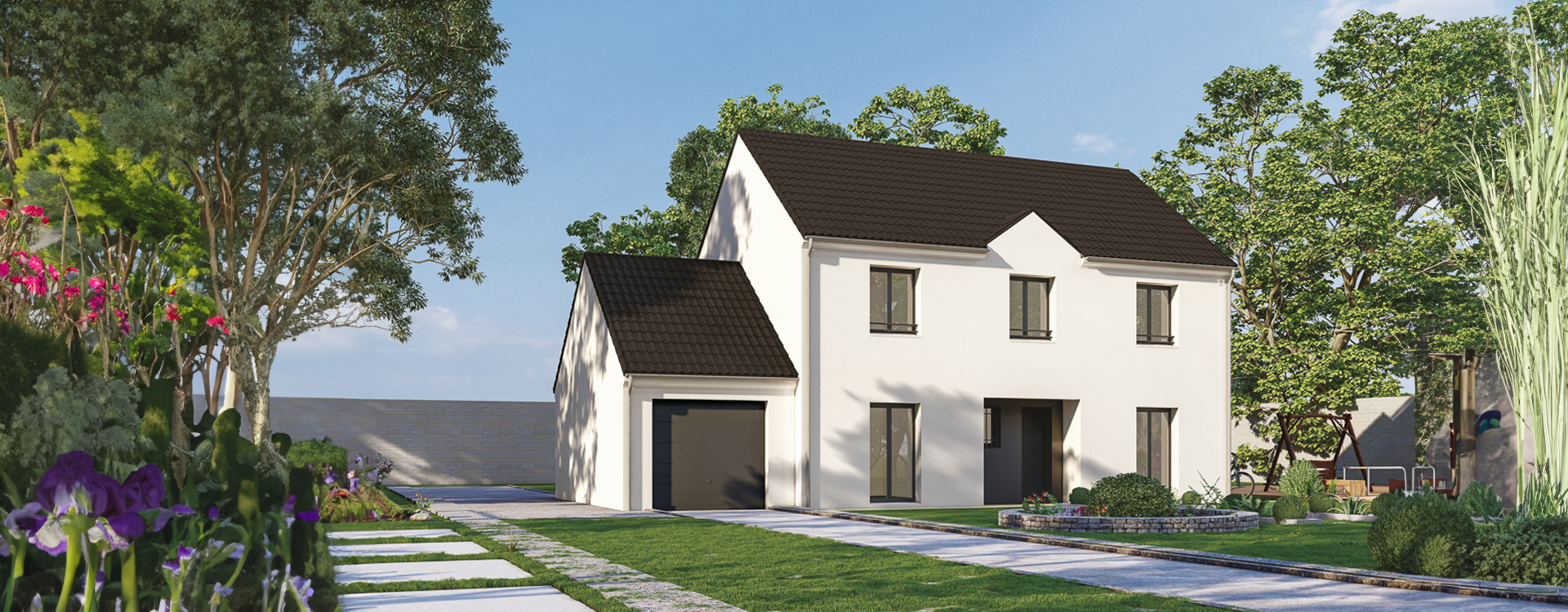 Les menuiseries sont en PVC de couleur blanche. La toiture est réalisée en tuiles béton double romane. Plusieurs couleurs d’enduit extérieur sont proposées.