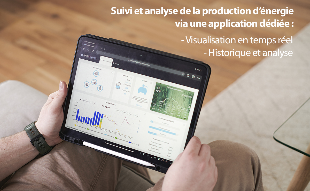 *Économie maximale constatée sur les consommations énergétiques avec une exploitation normale de l’ouvrage et occupé par un ménage avec des habitudes de vie en phase avec un système de production d’énergie. L’installation se compose de 6 panneaux photovoltaïques (3 kWc), avec une orientation optimale, et d’une armoire d’autoconsommation équipée d’une batterie de 2,4 kW.